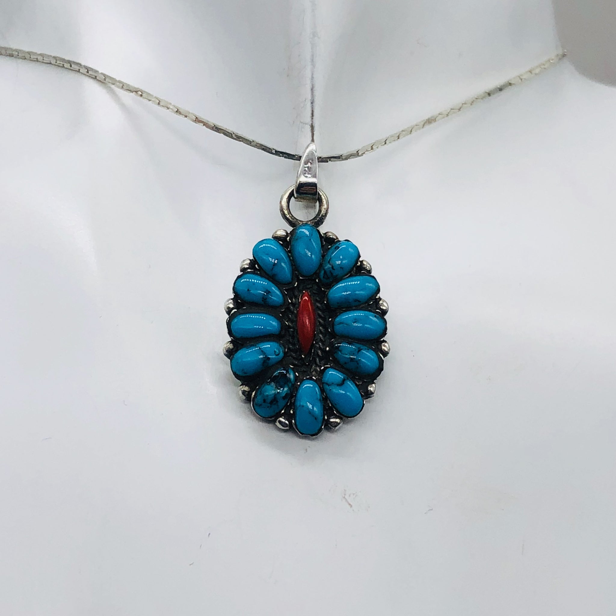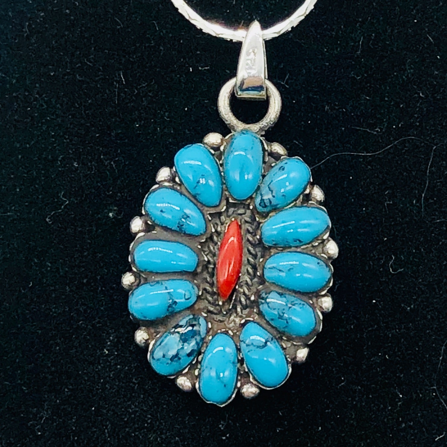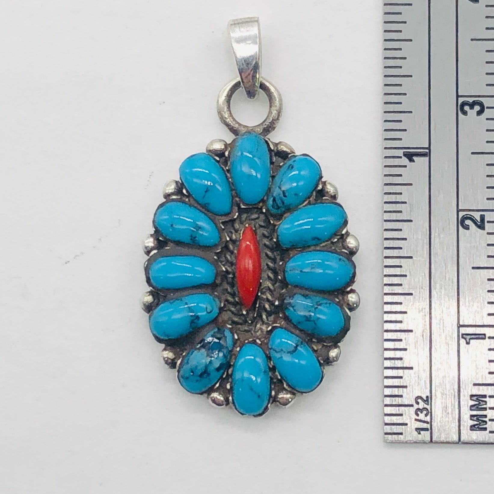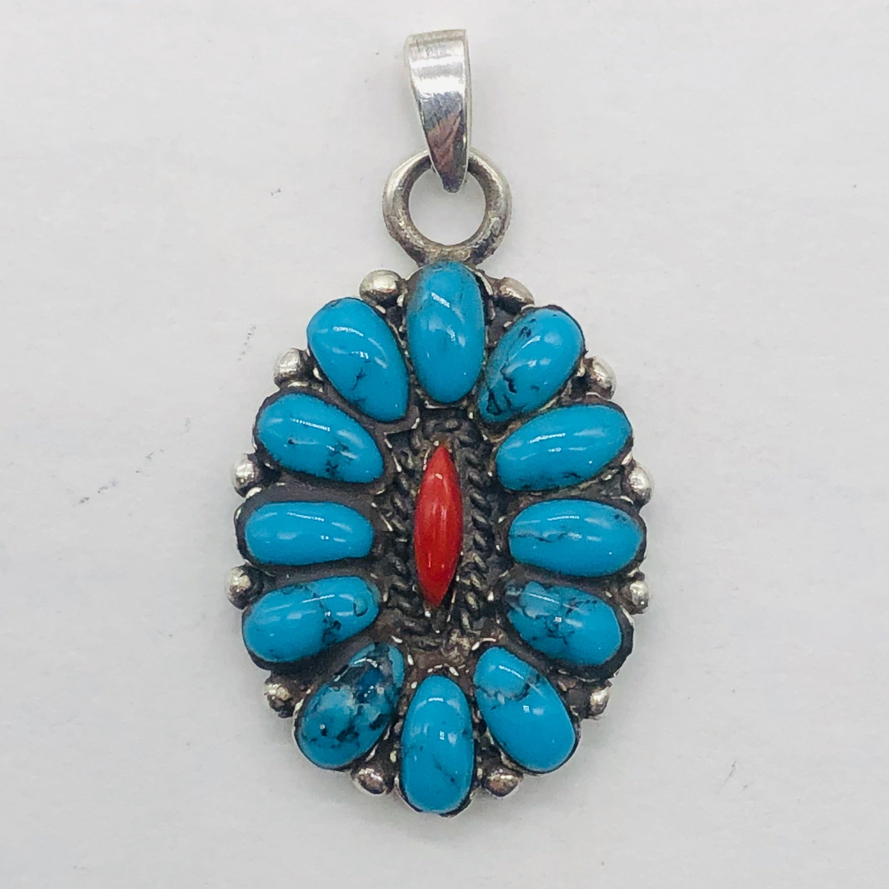 Blue/Red Turquoise Coral Squash Blossom Sterling Silver Blossom Pendant