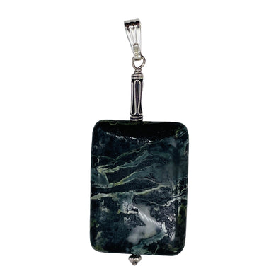 Tsunami Stone Sterling Silver Rectangle Pendant | 35x25x7.5mm | Green White |