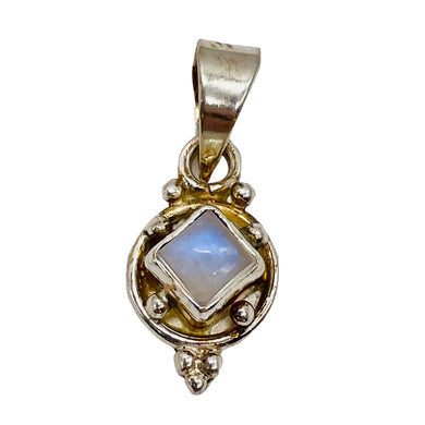 Moonstone Sterling Silver 5x5mm Square | 1" Long | Blue White | 1 Pendant |