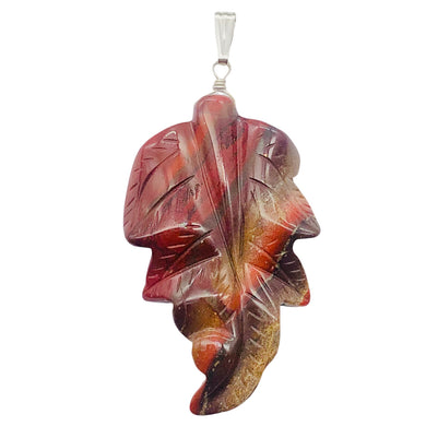 Carved Brecciated Jasper Leaf Sterling Silver Pendant | 2 3/4" Long| 1 pendant |