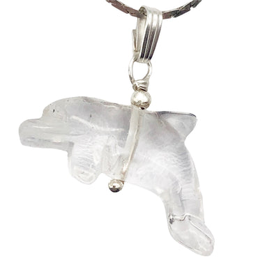 Quartz Dolphin Pendant Necklace | Semi Precious Stone Jewelry | Silver Pendant