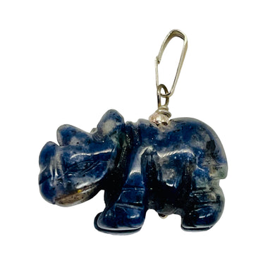 Sodalite Rhinoceros Pendant Necklace|Semi Precious Stone Jewelry|Silver Pendant