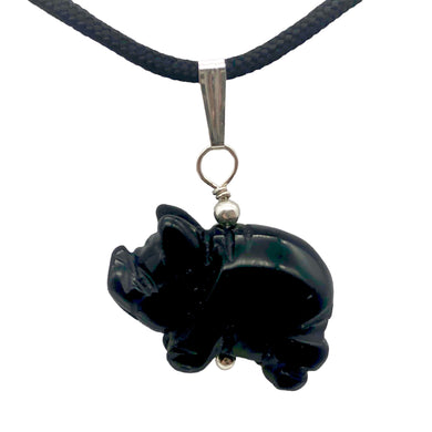 Black Obsidian Pig Pendant Necklace |Semi Precious Stone Jewelry|Silver Pendant|