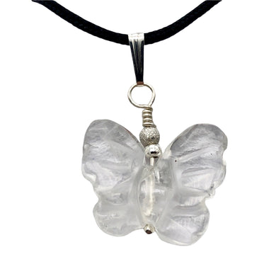 Flutter Carved Quartz Butterfly Sterling Silver Pendant | 1 1/4" Long| Clear |