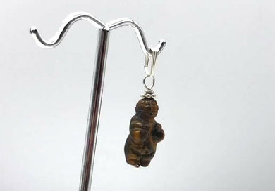 Hand Carved Tigereye Goddess of Willendorf Silver Pendant|1.5 "Long | Goddess |
