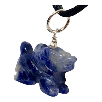 Sodalite Hand Carved Winged Dragon Sterling Silver Pendant 509286Sds