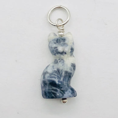 Adorable Blue Sodalite Cat & 925 Sterling Silver Pendant 509257SDS