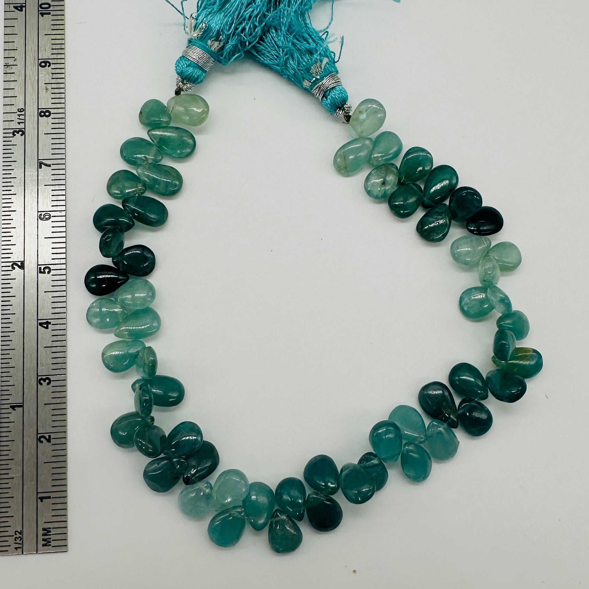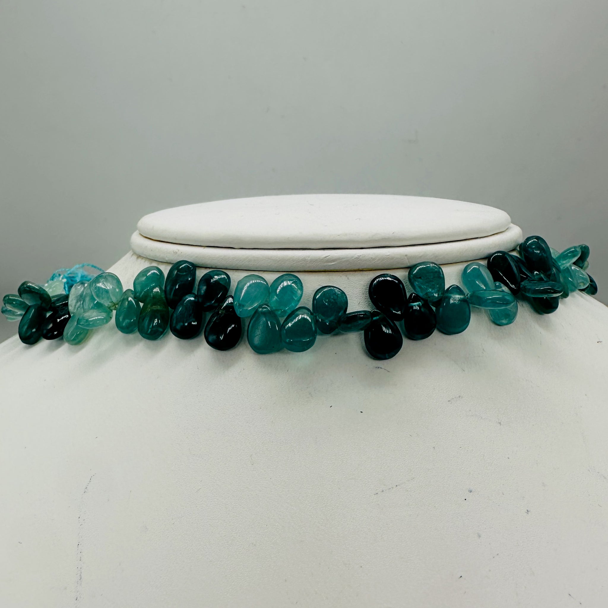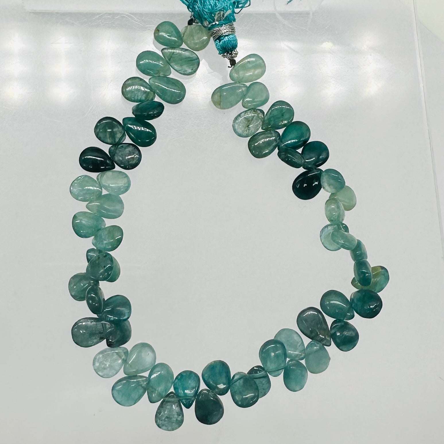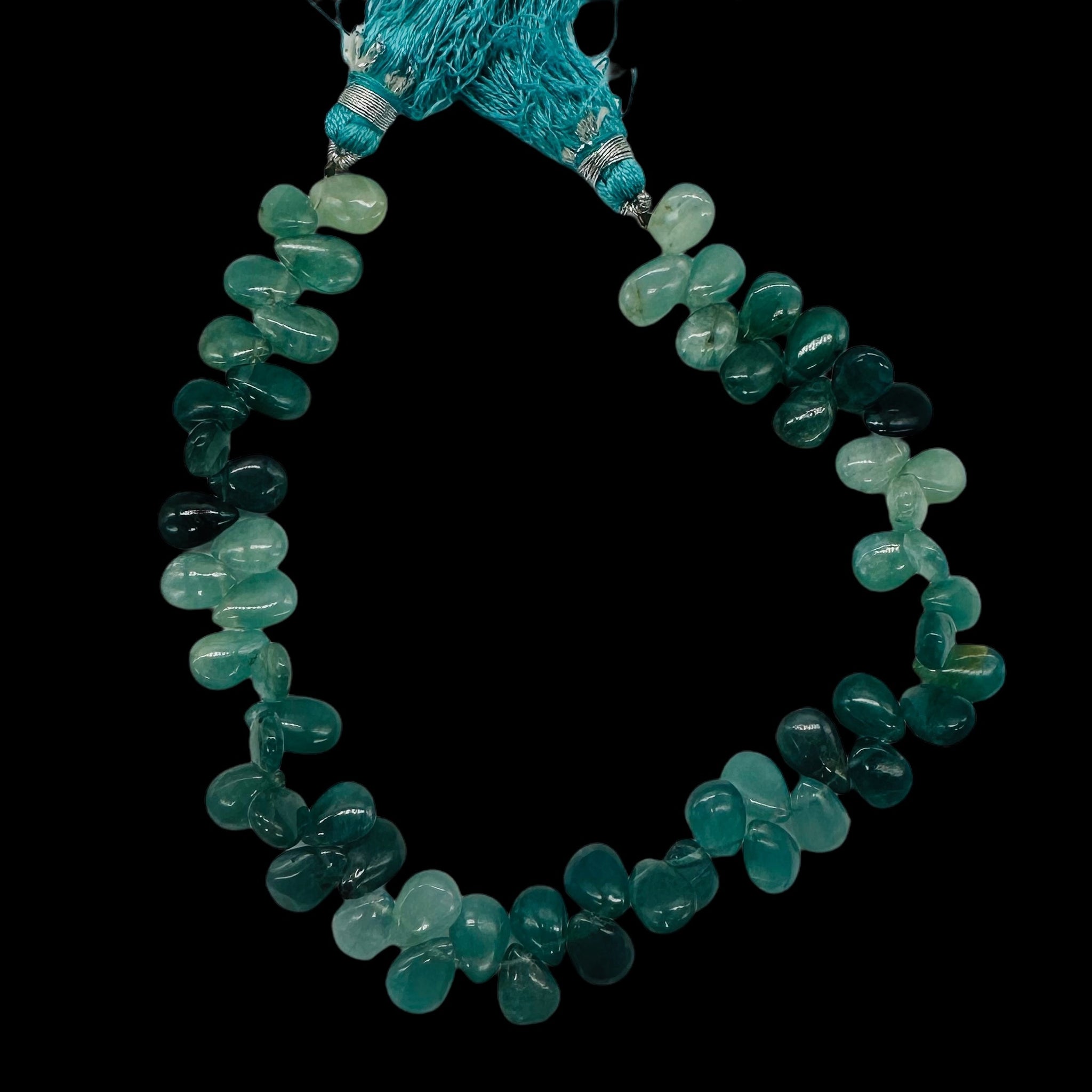 This rare and breathtaking strand of Grandidierite briolettes shimmers in luminous shades of aqua and blue! Each natural AAA bead captures the essence of tropical waters and tranquil energy, making it a perfect choice for elegant jewelry creations. These finely cut briolettes radiate brilliance, enhancing any design with sophistication and natural beauty.