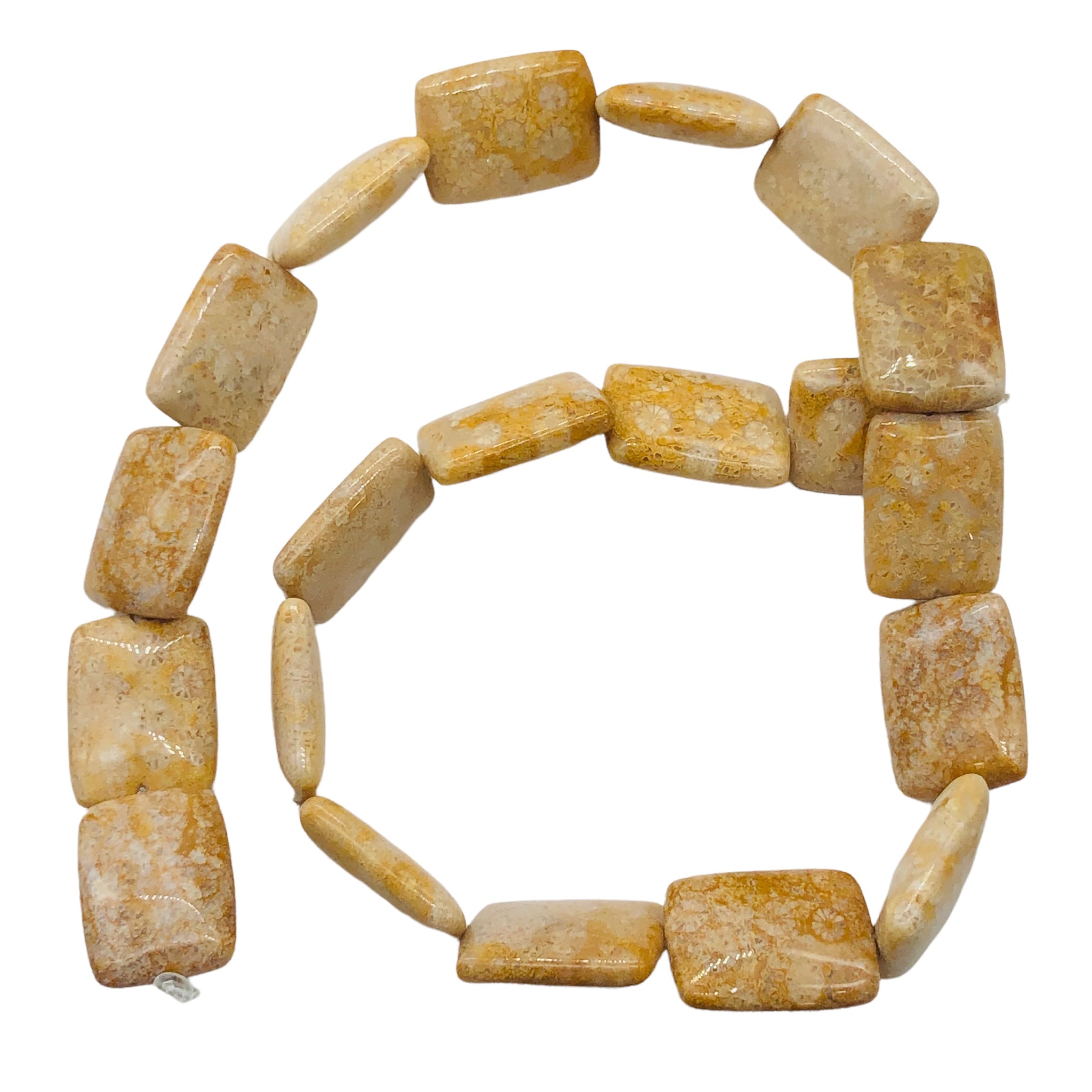 Fossilized Coral Half Strand of Rectangular Brown/White Beads for Jewelry Making.