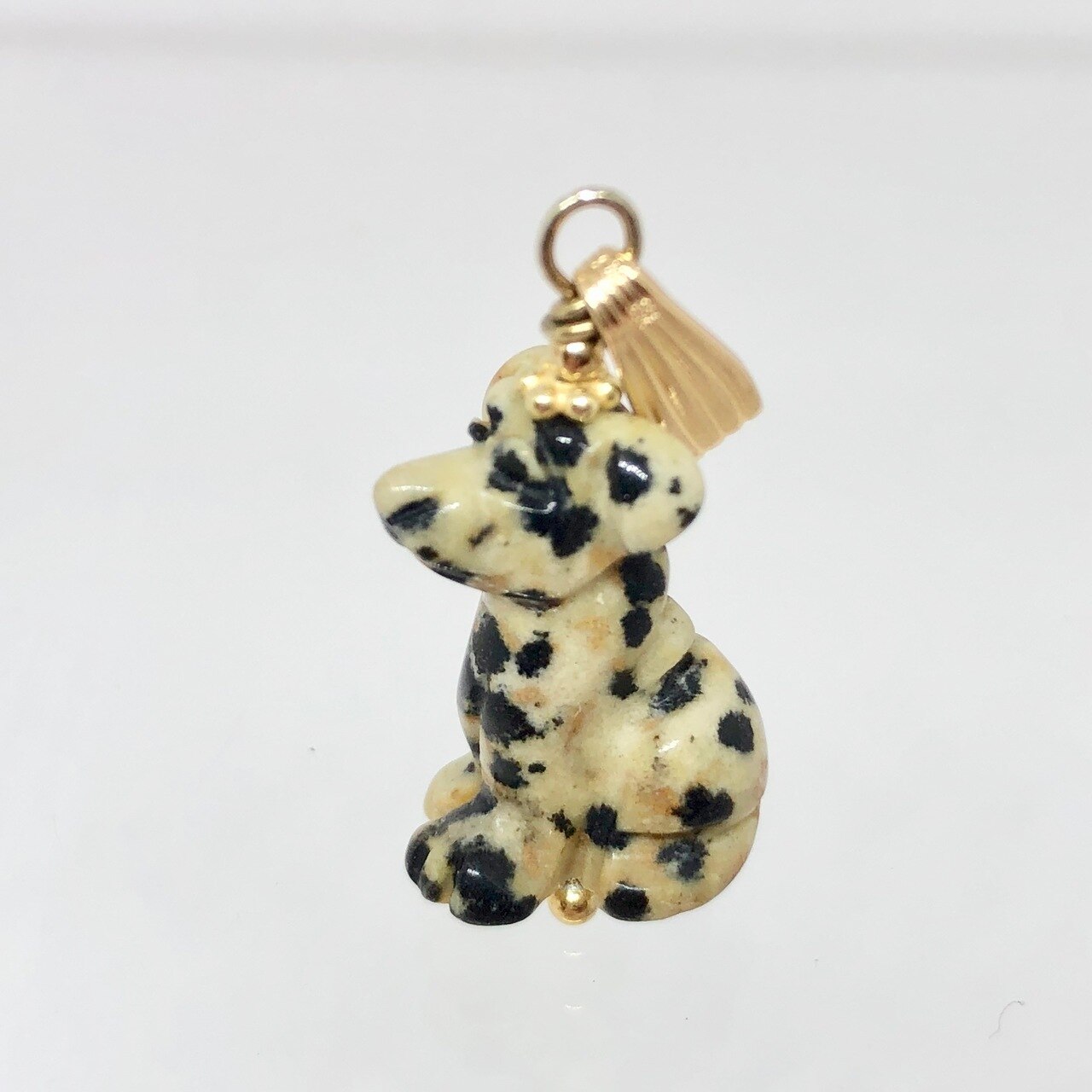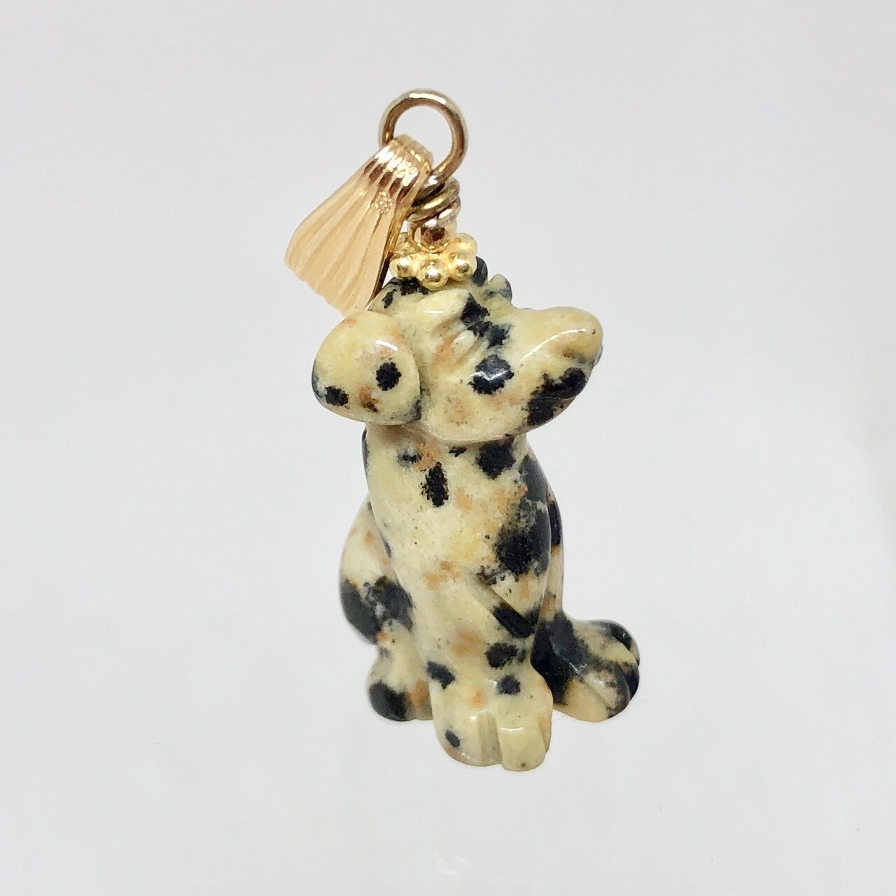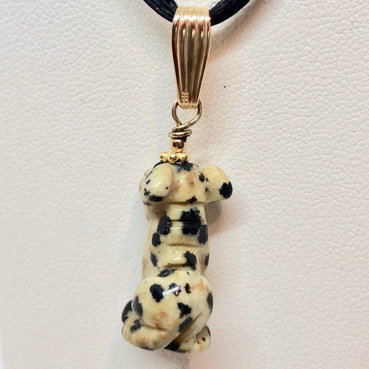 This is for one Hand carved DALMATION STONE DOG Pendant! Dalmation Stone is a variety of jasper that is beige with black spots similar to the Dalmation dog breed. This pendant will add that touch of whimsy to your wardrobe or a great gift for any dog lover!