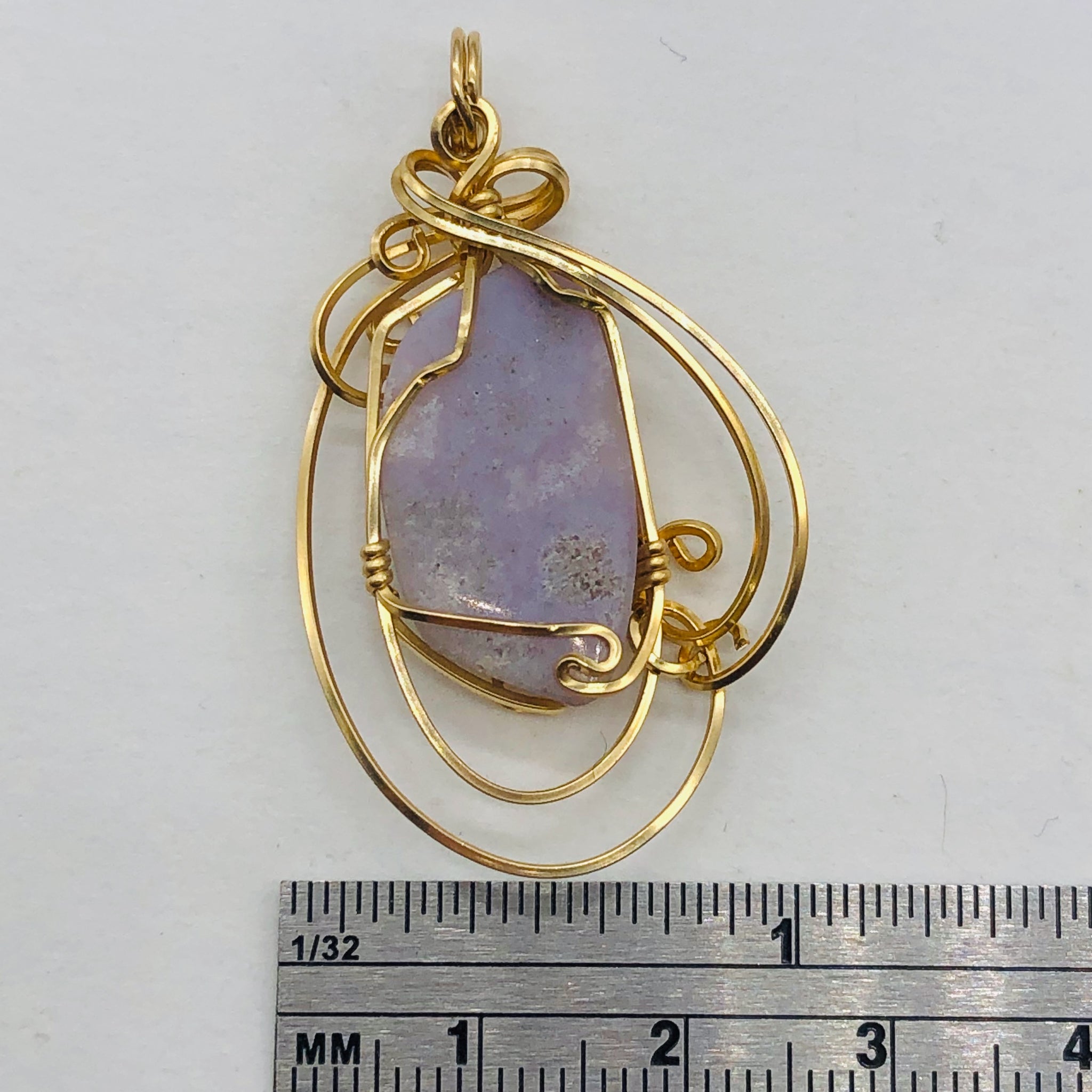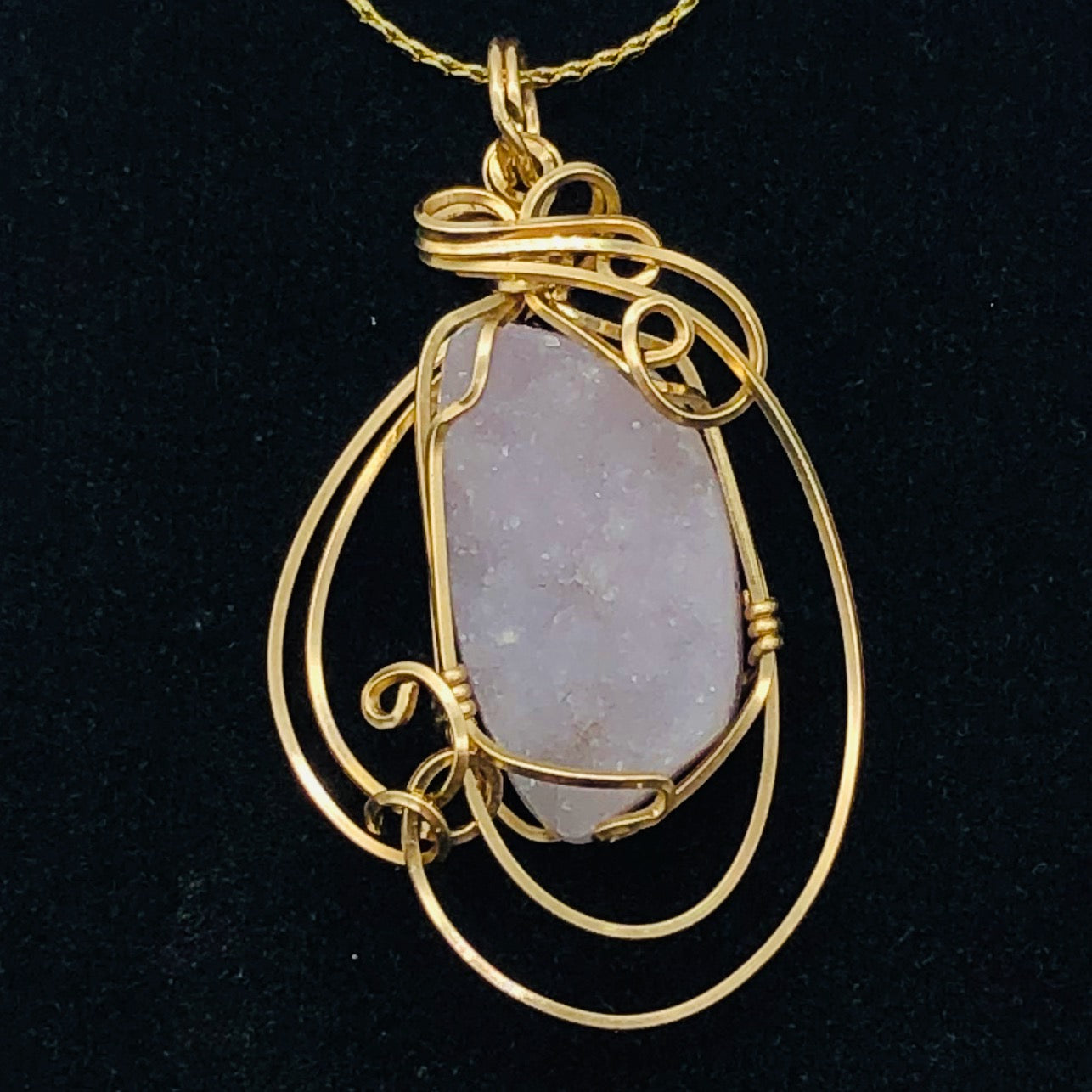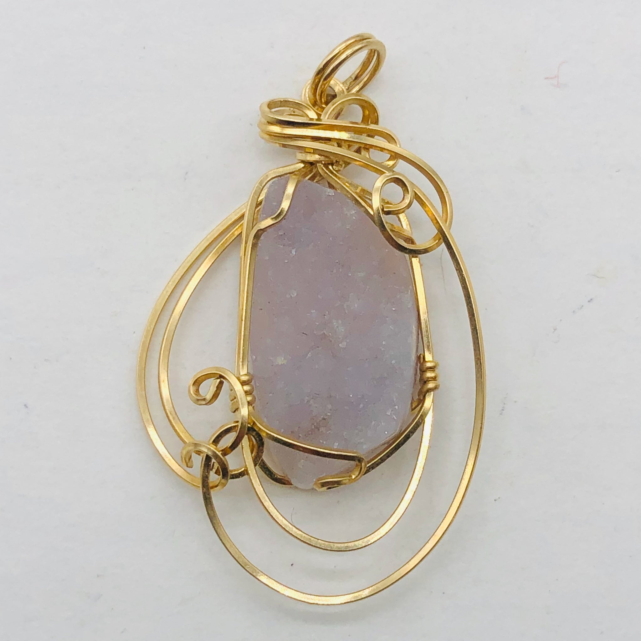 Light Pink Lavender Druzy Agate 14K Gold Filled Wire Wrap Drop Pendant