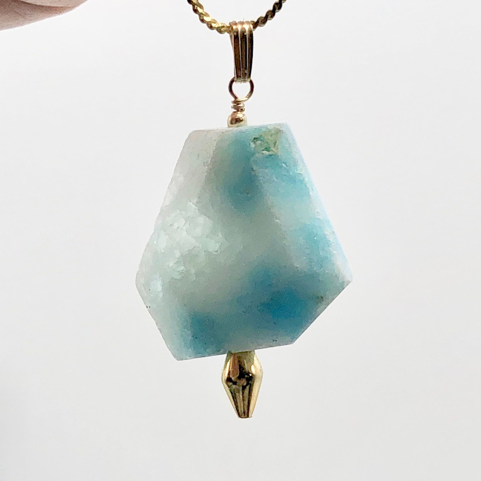 This is a natural hemimorphite pendant with 14K Gold Filled accents and bail.