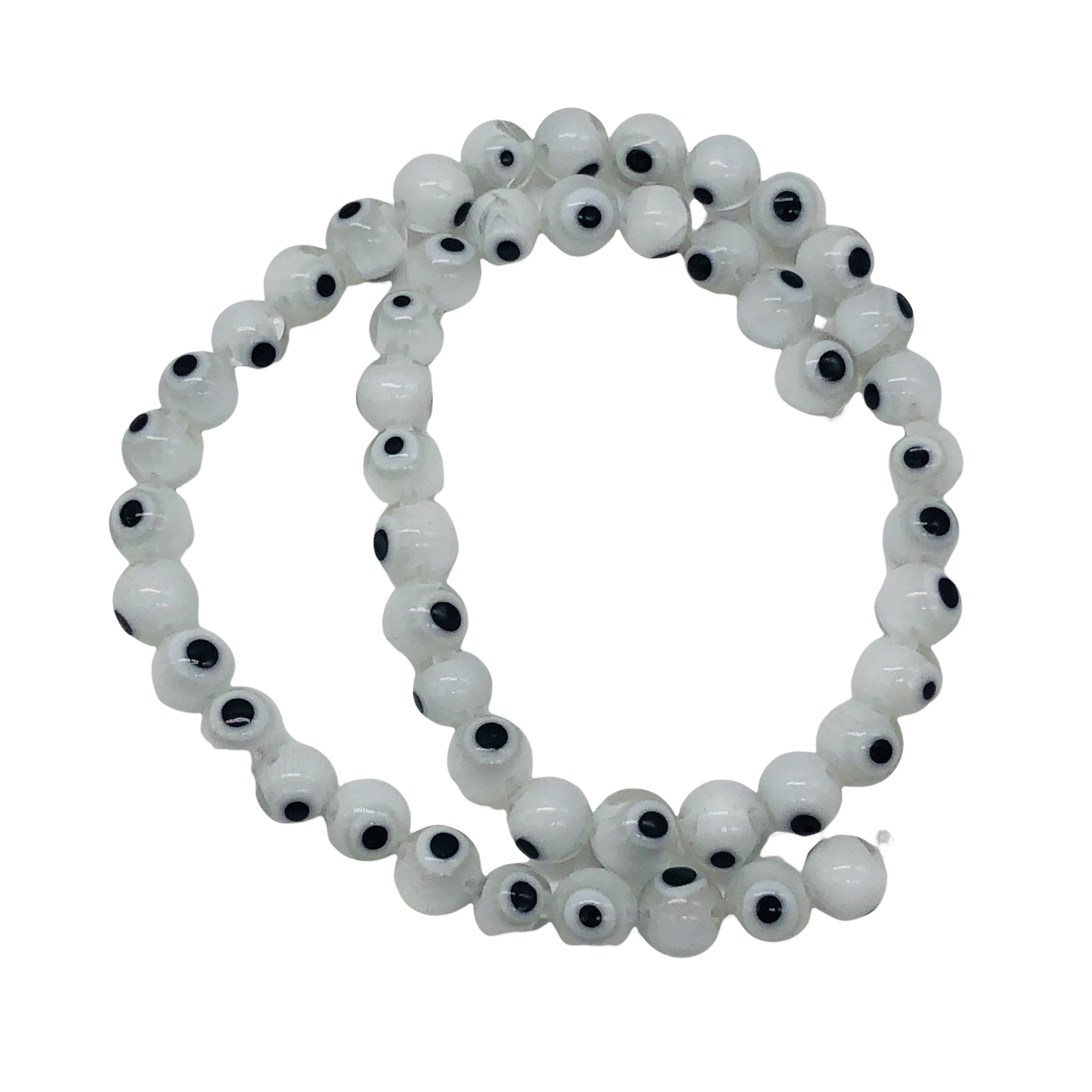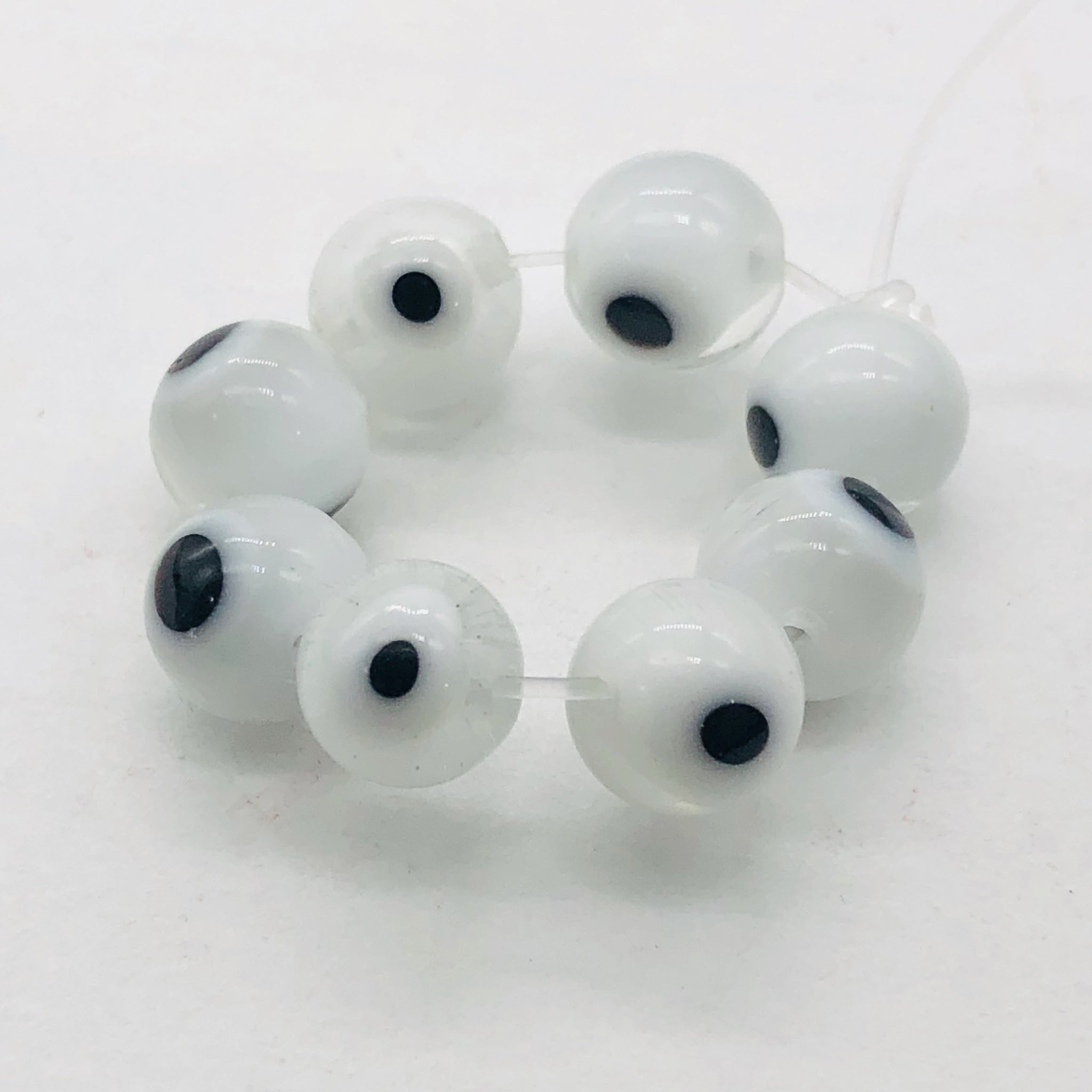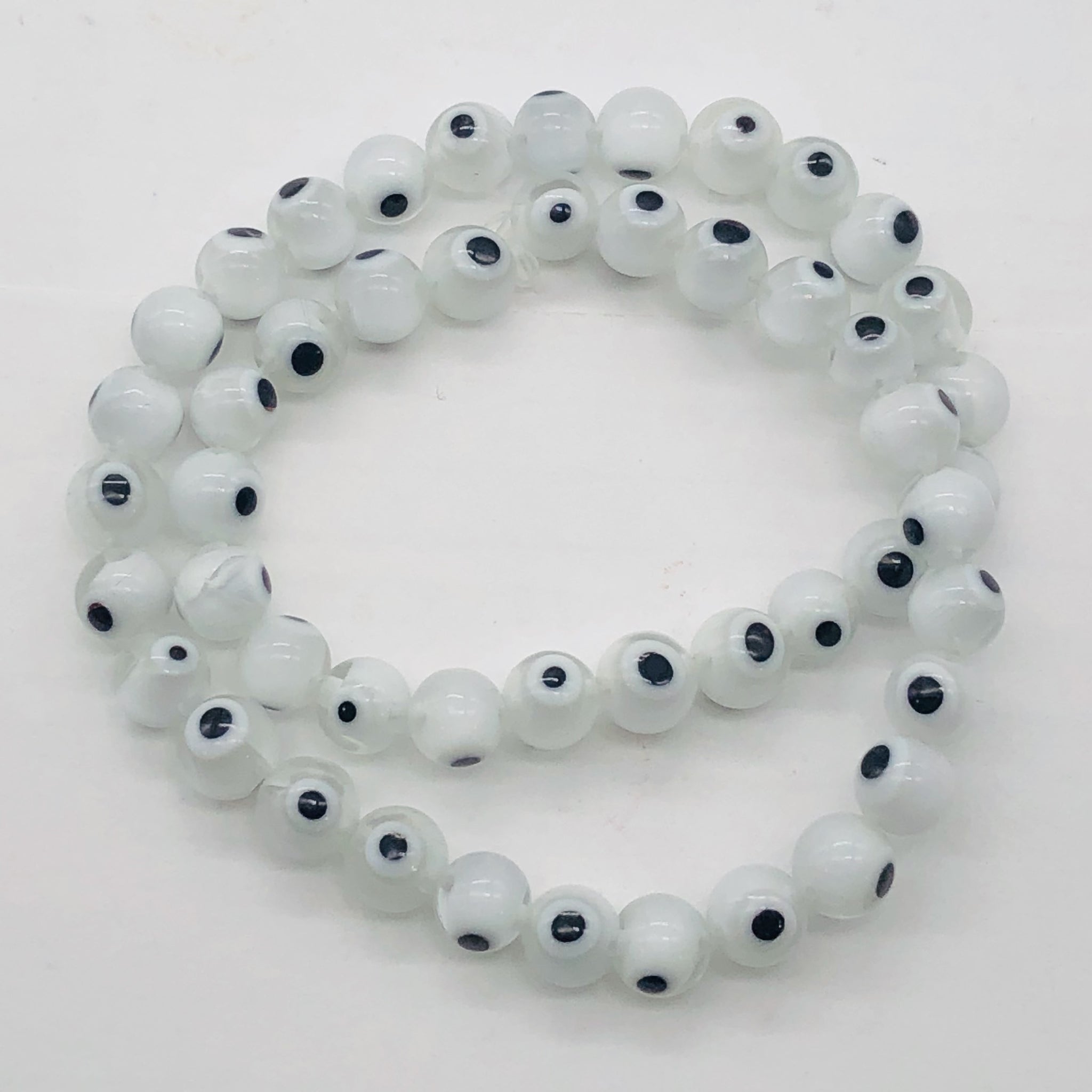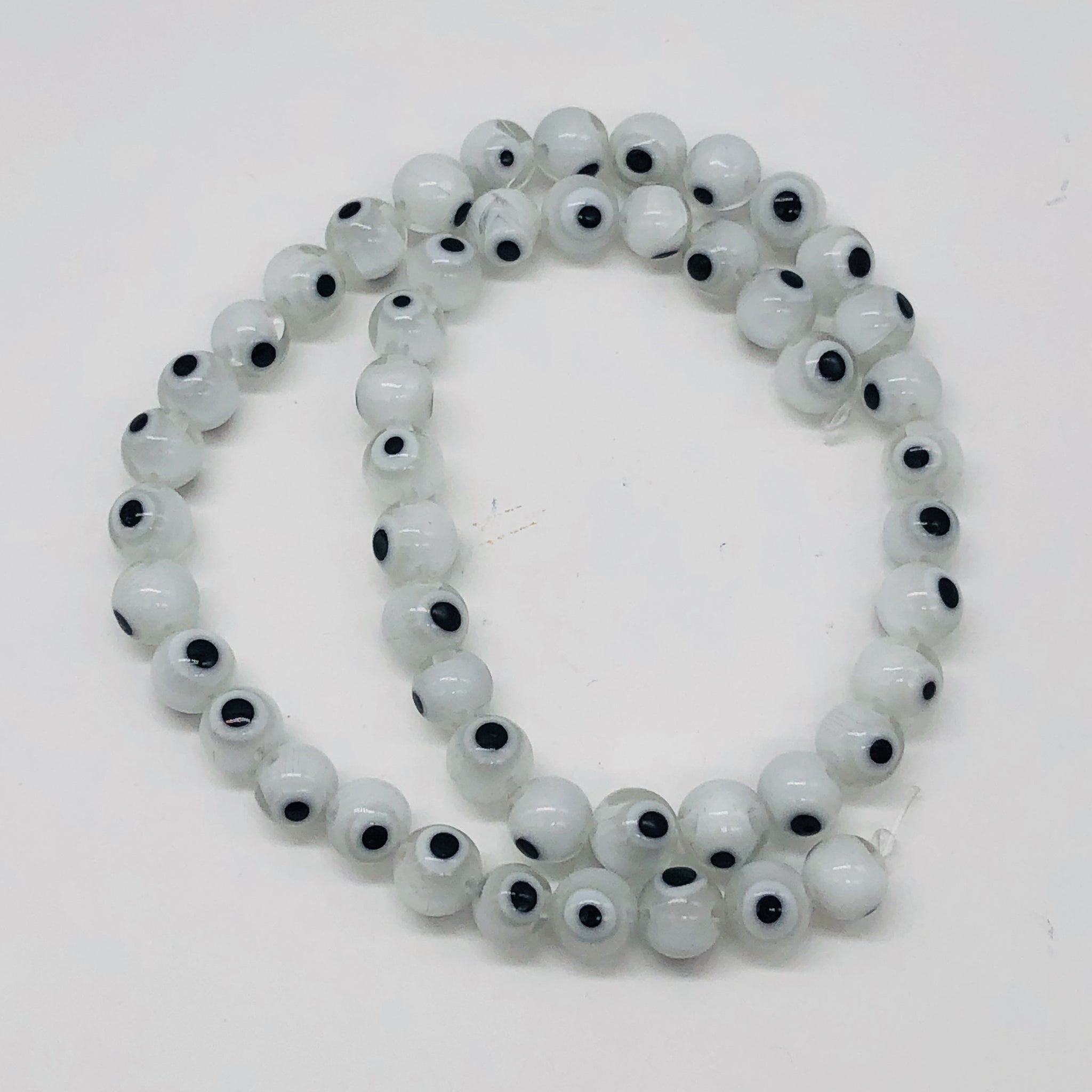 White Glass Eye 14" Strand Round Beads ' 48 Beads ' 8 Mmm '
