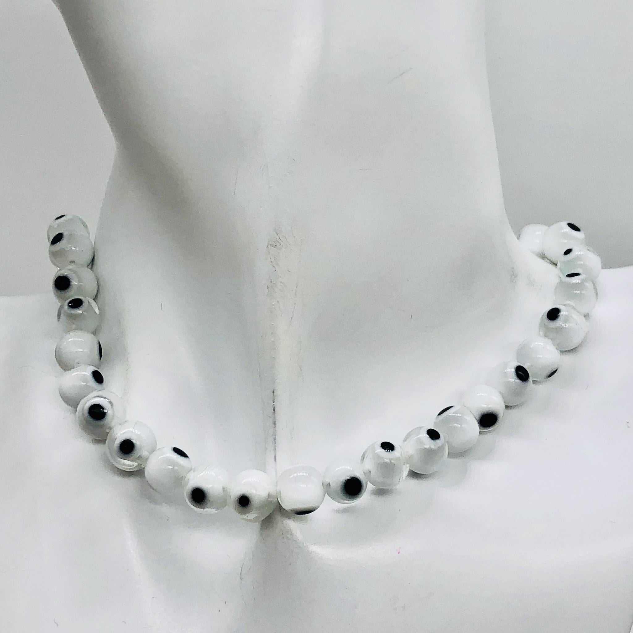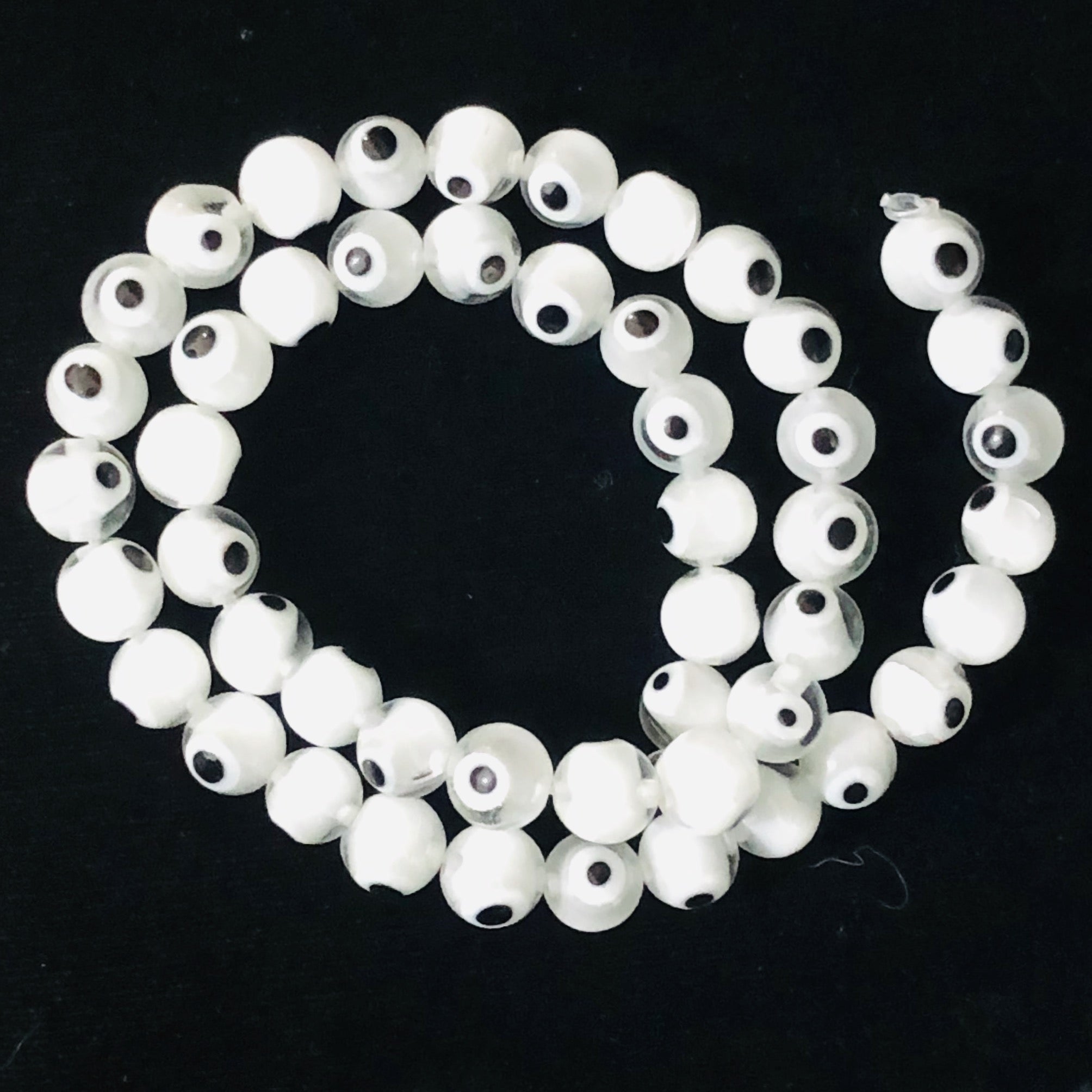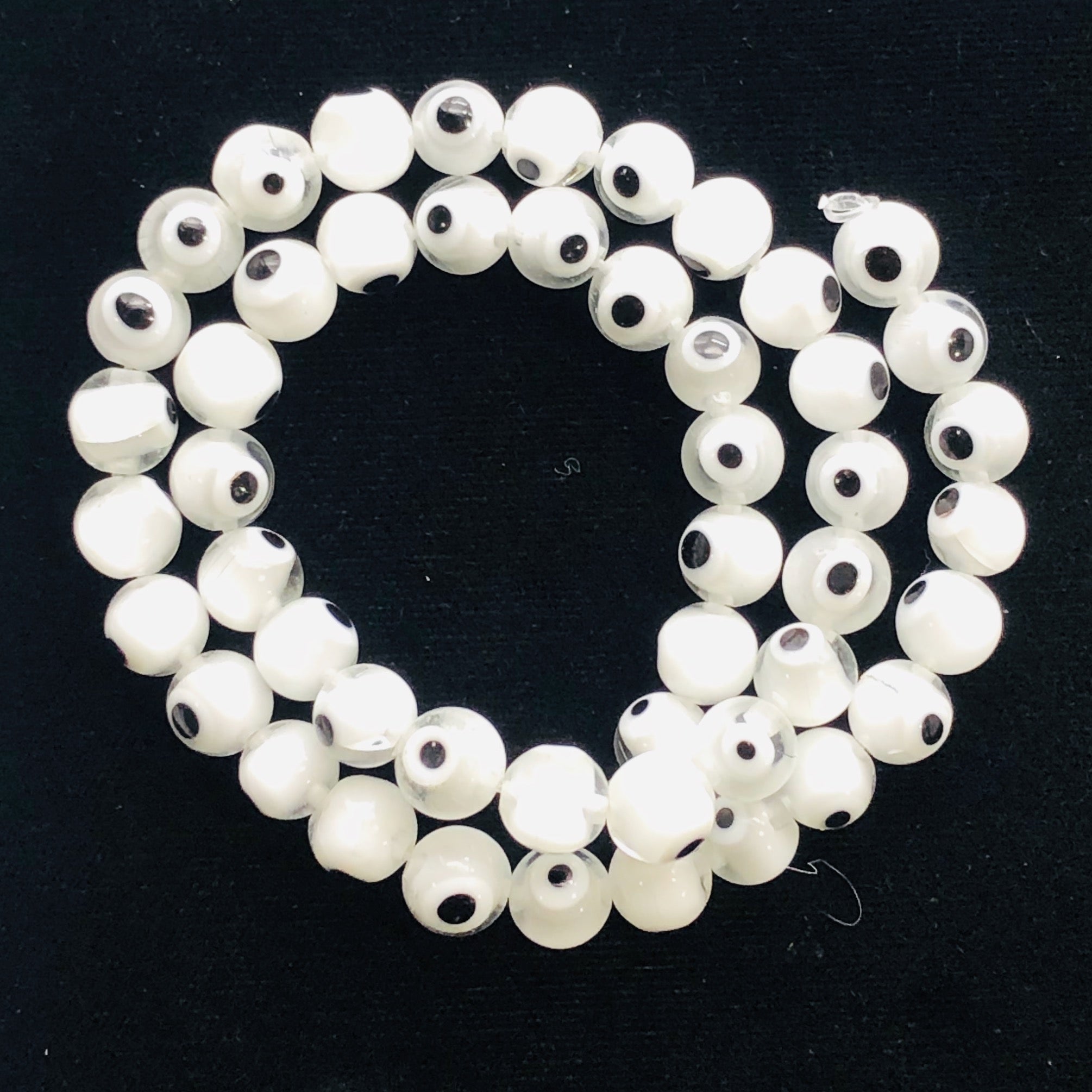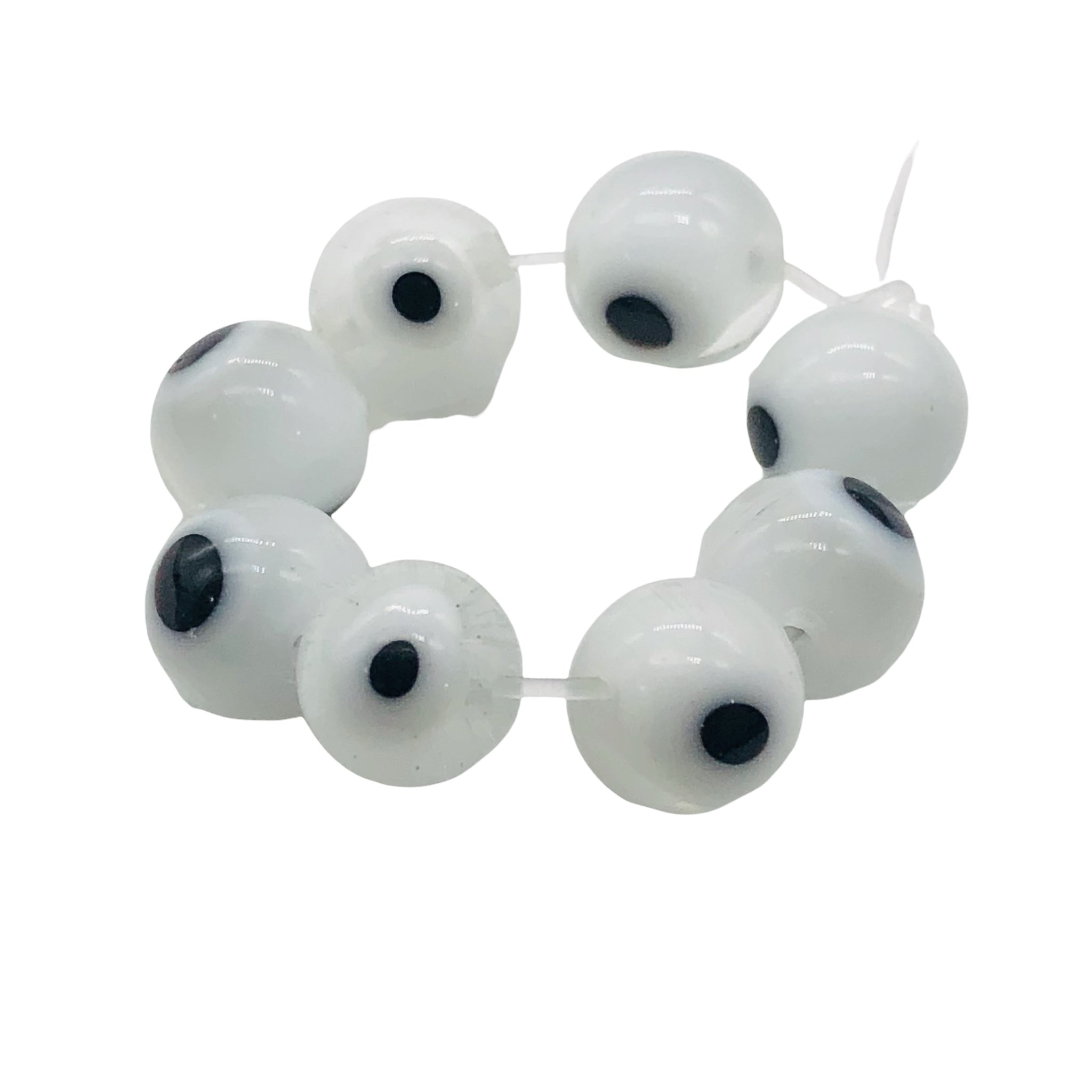 White Glass Eye 14" Strand Round Beads ' 48 Beads ' 8 Mmm '