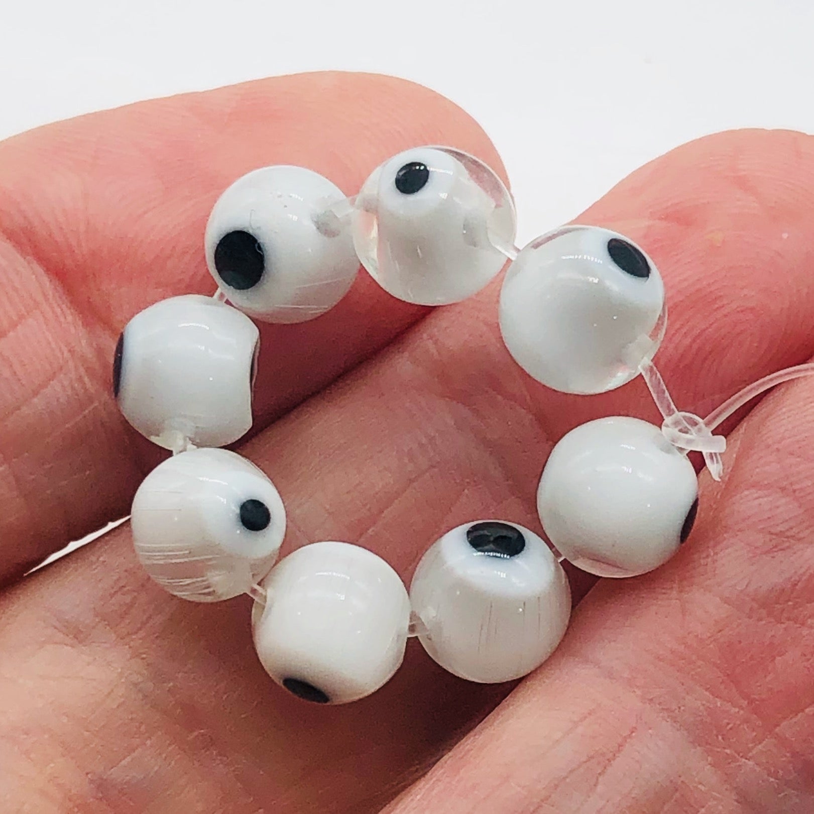 Unique glass beads with an all seeing eye on two sides. These beads will start a conversation if used in Earrings, a Bracelet or accents in a Necklace. Everyone will love them.